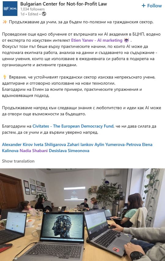 * Всяко група в обучение с мен получава и бонус: моята енциклопедия с над 60 тествани, работещи и често безплатни AI инструменти за бизнес и ежедневието.